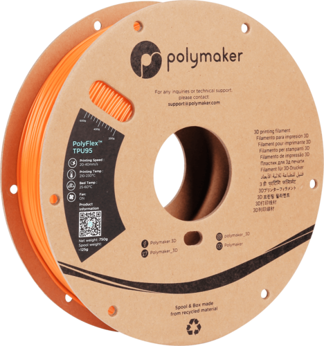 פילמנט גמיש כתום 750 גרם 1.75 מ"מ- POLYFLEX TPU 95A ORANGE